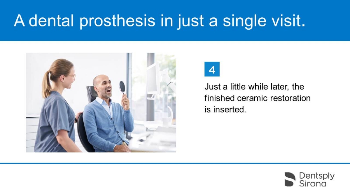 Mediante una presentación en PowerPoint, los usuarios de CEREC pueden generar conciencia sobre el método CEREC - en la atmósfera relajada de la sala de espera. La presentación levantará el interés del paciente, les dará curiosidad y pedirán al dentista más información sobre el método de tratamiento.