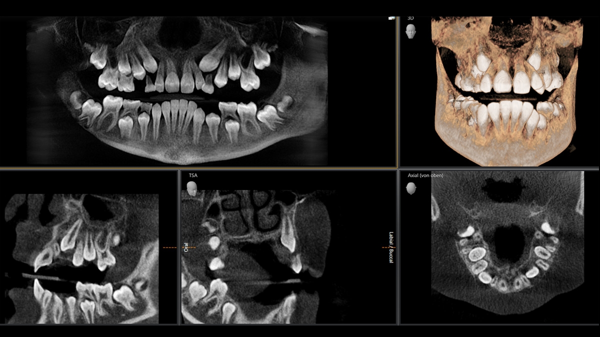 Mientra trabaja con niños, es esencial tener un nivel adicional de cuidado, sin embargo, existirán casos en los que las imágenes 2D no pueden proporcionar la información necesaria. Con el modo de dosis baja ahora ambos mundos pueden combinarse: el nivel de dosis baja de una imagen panorámica para proteger a los pacientes jóvenes y el nivel de información de una imagen CBCT para el mejor tratamiento.