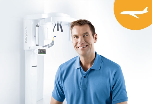 La dosis de radiación con Orthophos XG 3D es 13-166 µSv por imagen de rayos X. Esto corresponde a la exposición de radiación de un vuelo de larga distancia (Alrededor de 100 µSv).