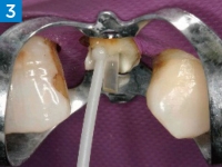 「プライム&ボンド ユニバーサル」「セルフキュア アクチベータ」「コア Xフロー」3 製品が反応することで、光重合型タイプのボンディング材がデュアルキュアタイプに変化し、かつボンディング材およびコア材の硬化を促進。そのため、光の届きにくい根管内においても安定した接着性を得ることができます。